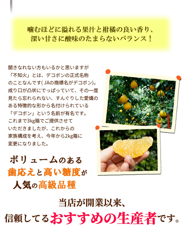 商品カテゴリ一覧 > 旬のフルーツフェア > 葉付き不知火柑 > 不知火柑(デコポン) 熊本 2箱